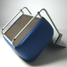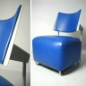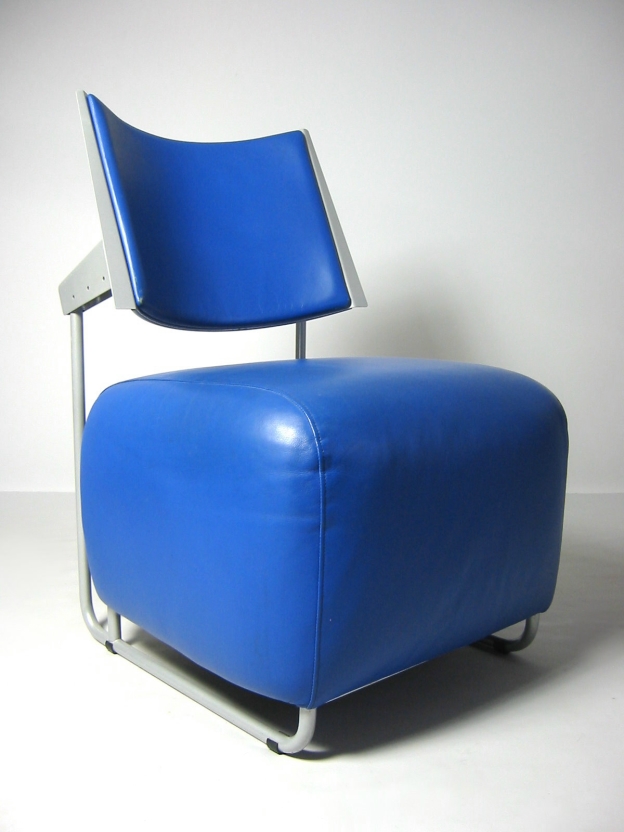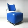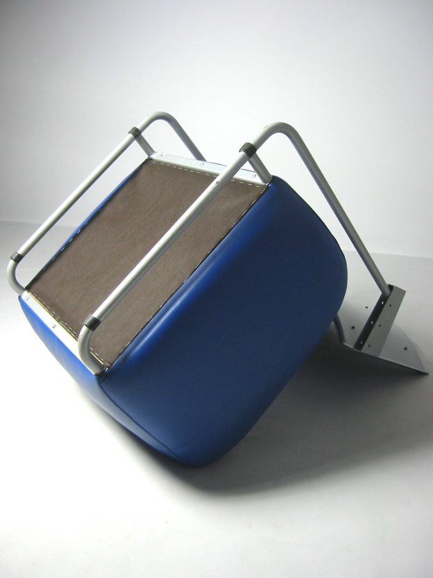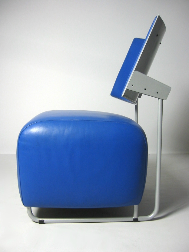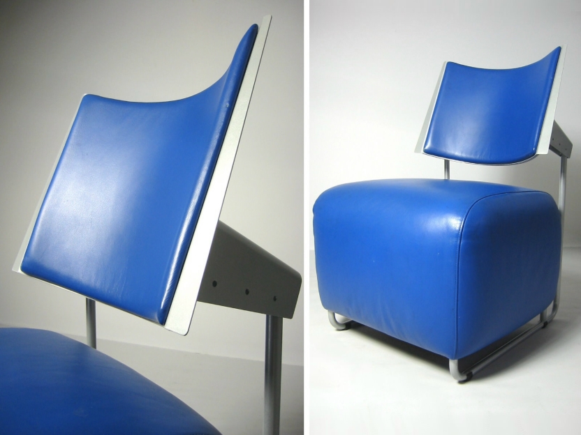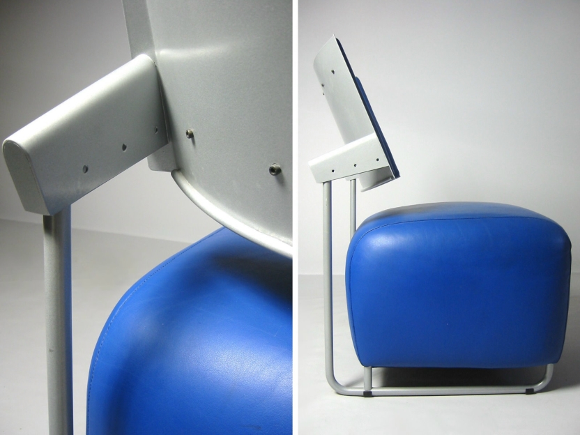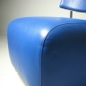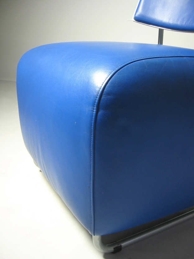 und ist wie die Lehne mit weichem Glattleder (blau) bezogen.